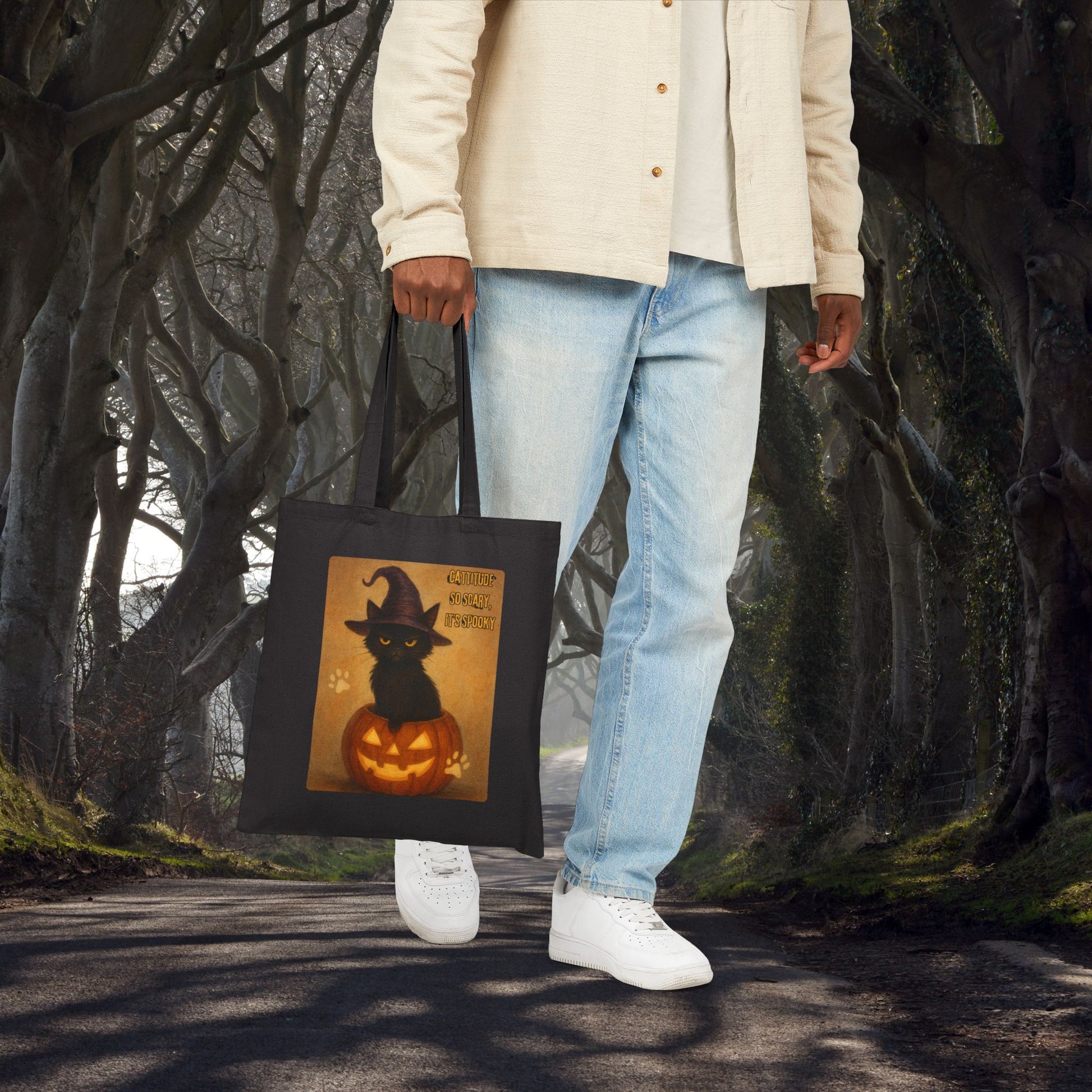 Catitude So Scary, It's Spooky Halloween Cat Tote Bag, Fabric Shopping Bag, Gift for Cat Lovers, Eco-Friendly Reusable Tote, Halloween Decoration
