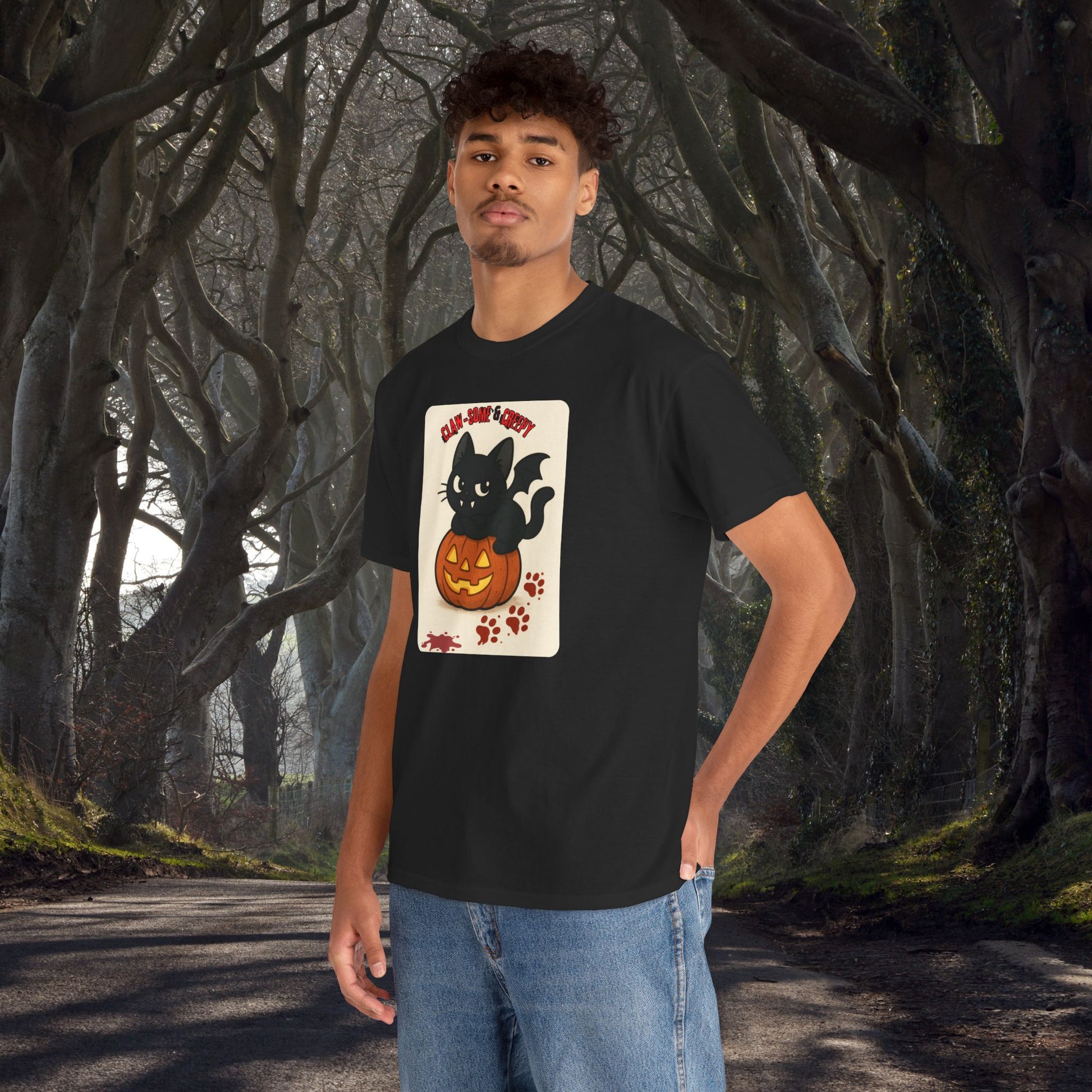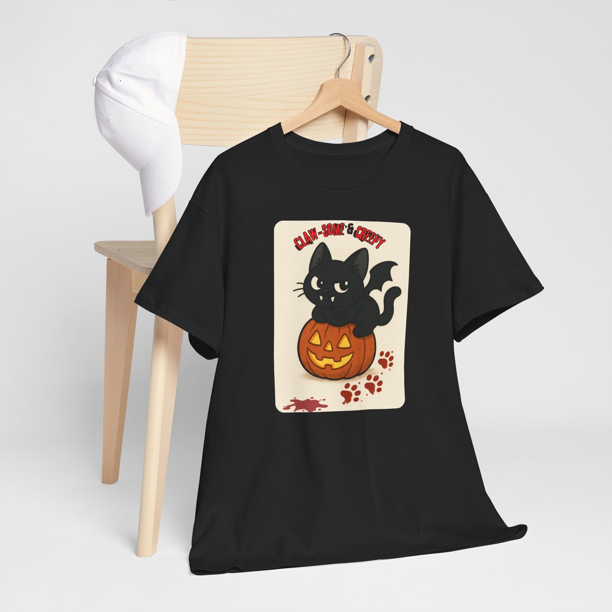 Claw-Some and Creepy - Halloween Cat Tee, Black Cat T-Shirt, Pumpkin Graphic Tee, Spooky Season Apparel, Cute Halloween Gift