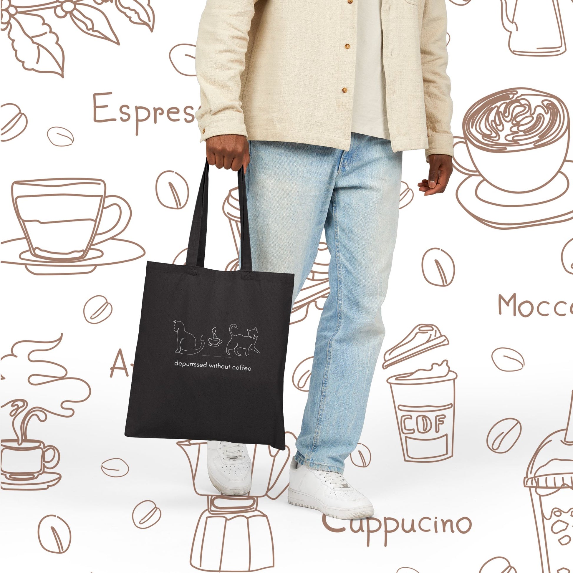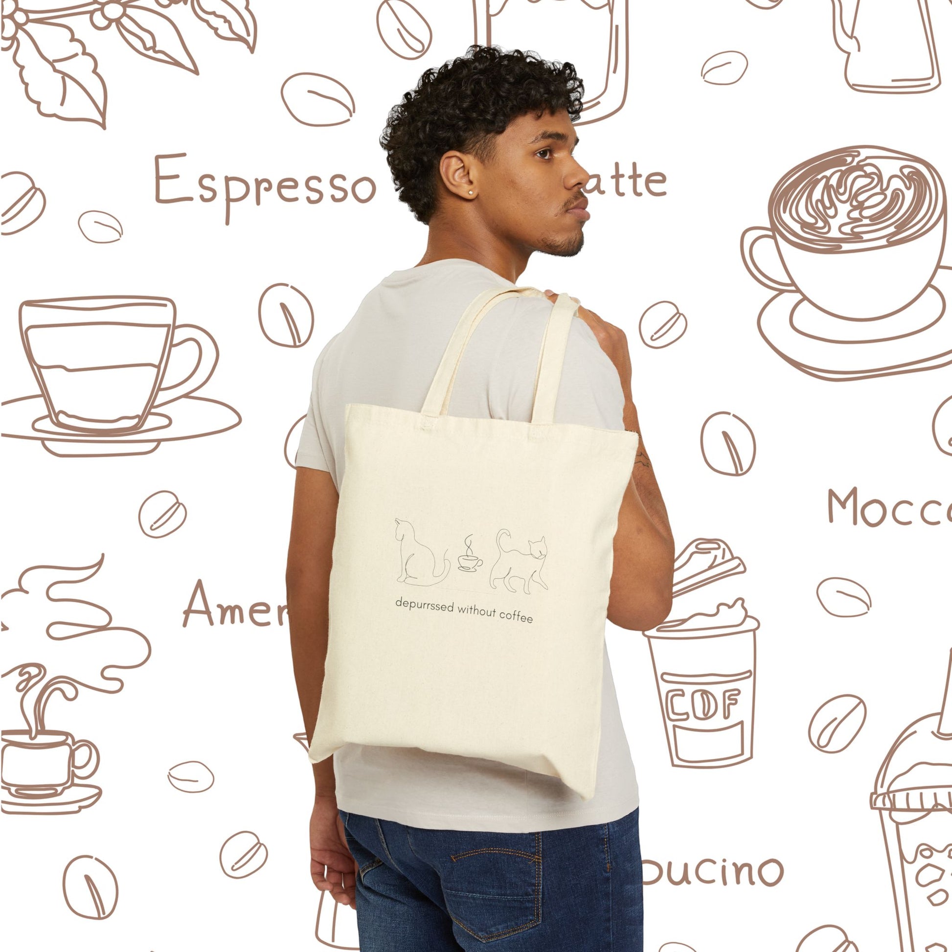 Depurrssed Without Coffee Canvas Tote Bag — Minimalist Coffee Lover Tote