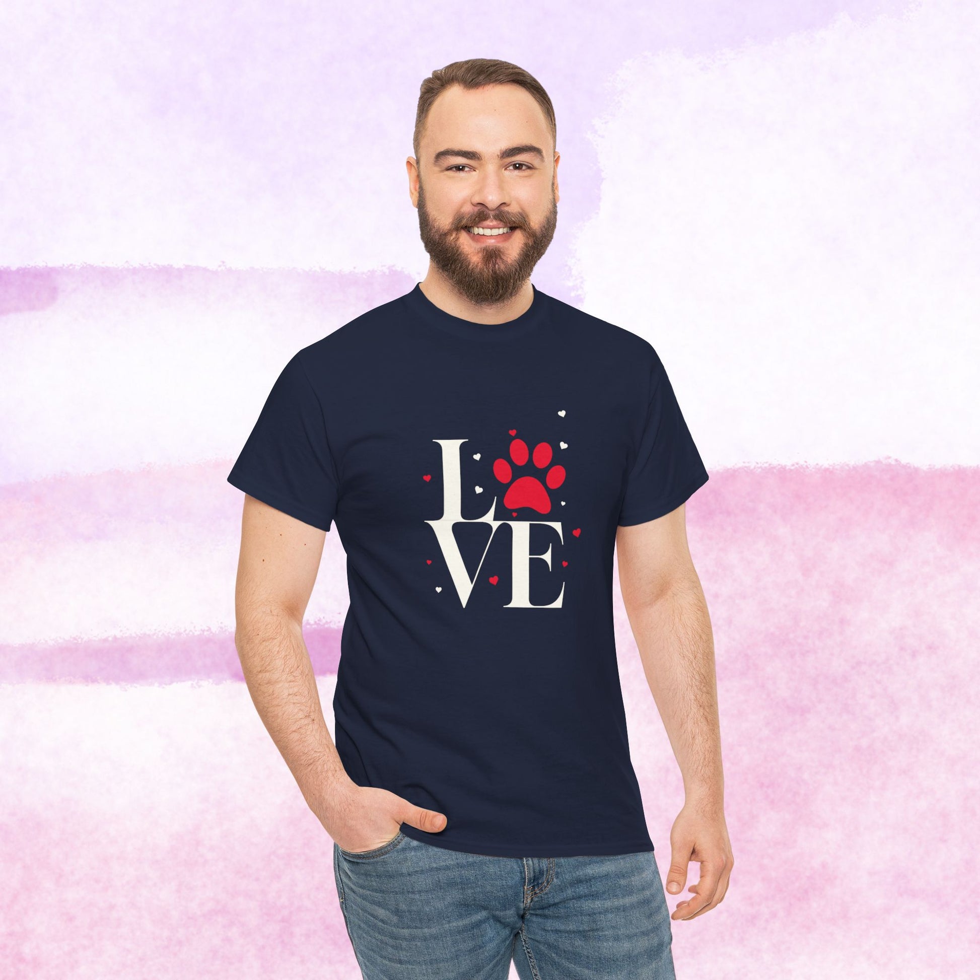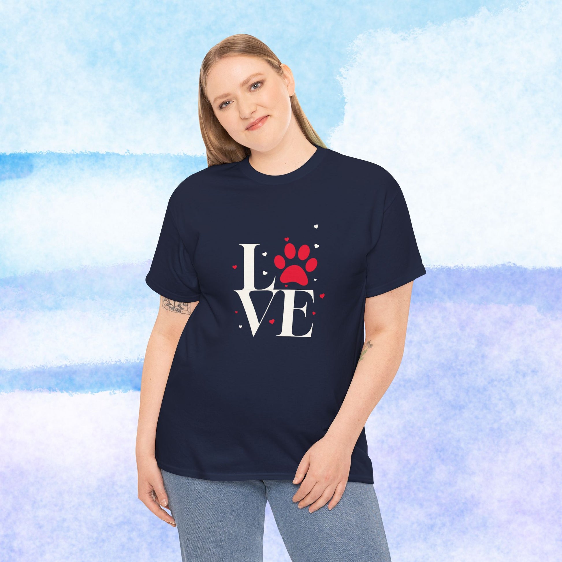 Love Paw T-Shirt — Cute Red Paw Print "LOVE" Graphic Tee for Pet Lovers