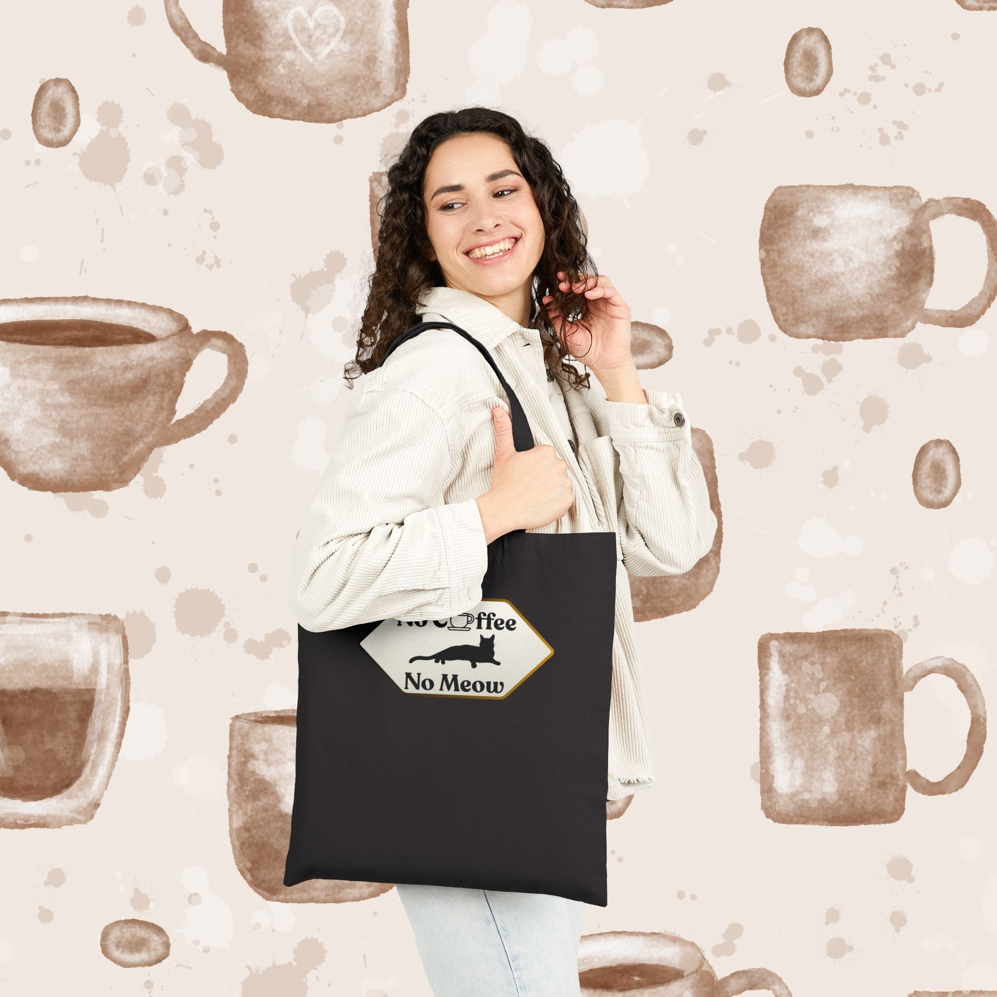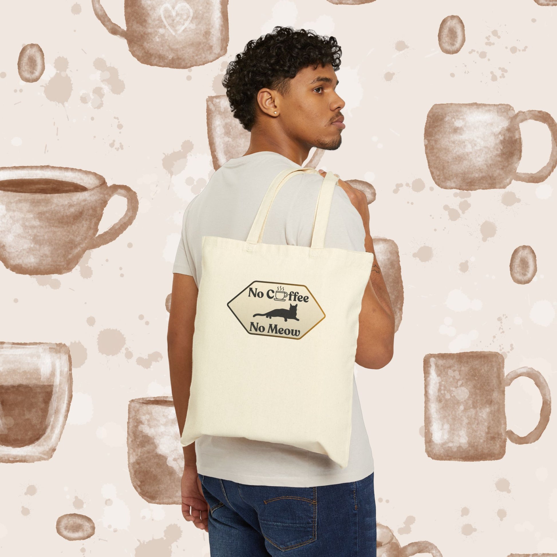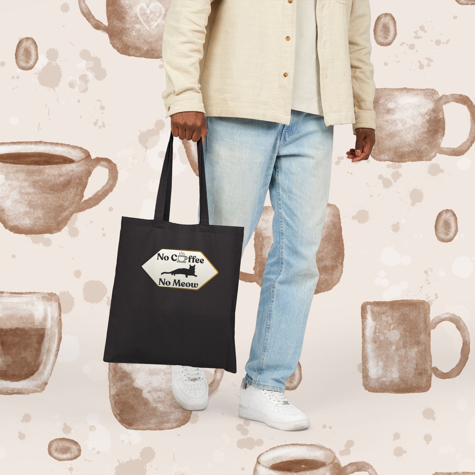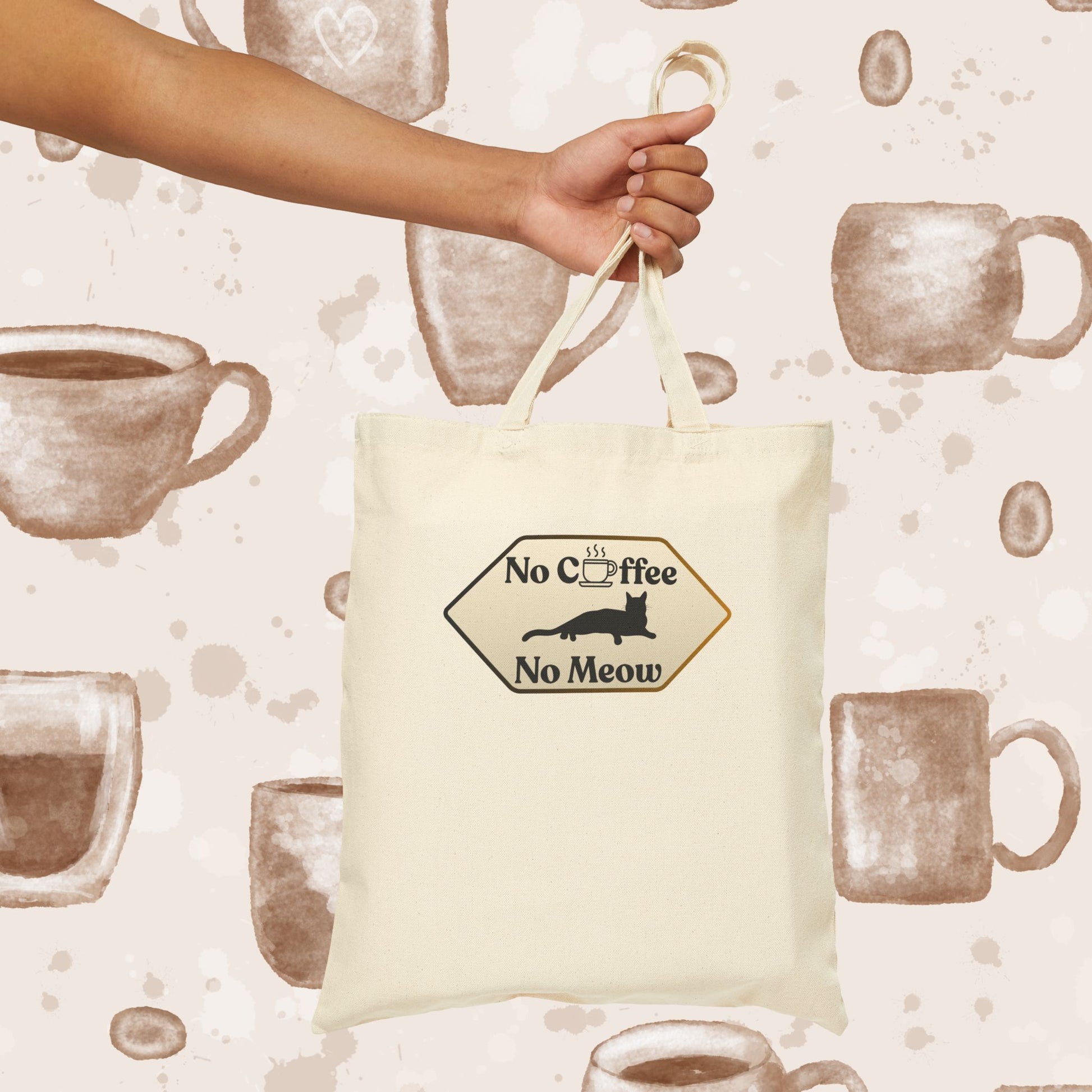 No Coffee No Meow Canvas Tote Bag – Sarcastic Coffee Cat Sign, Funny Cat Lover Coffee Tote