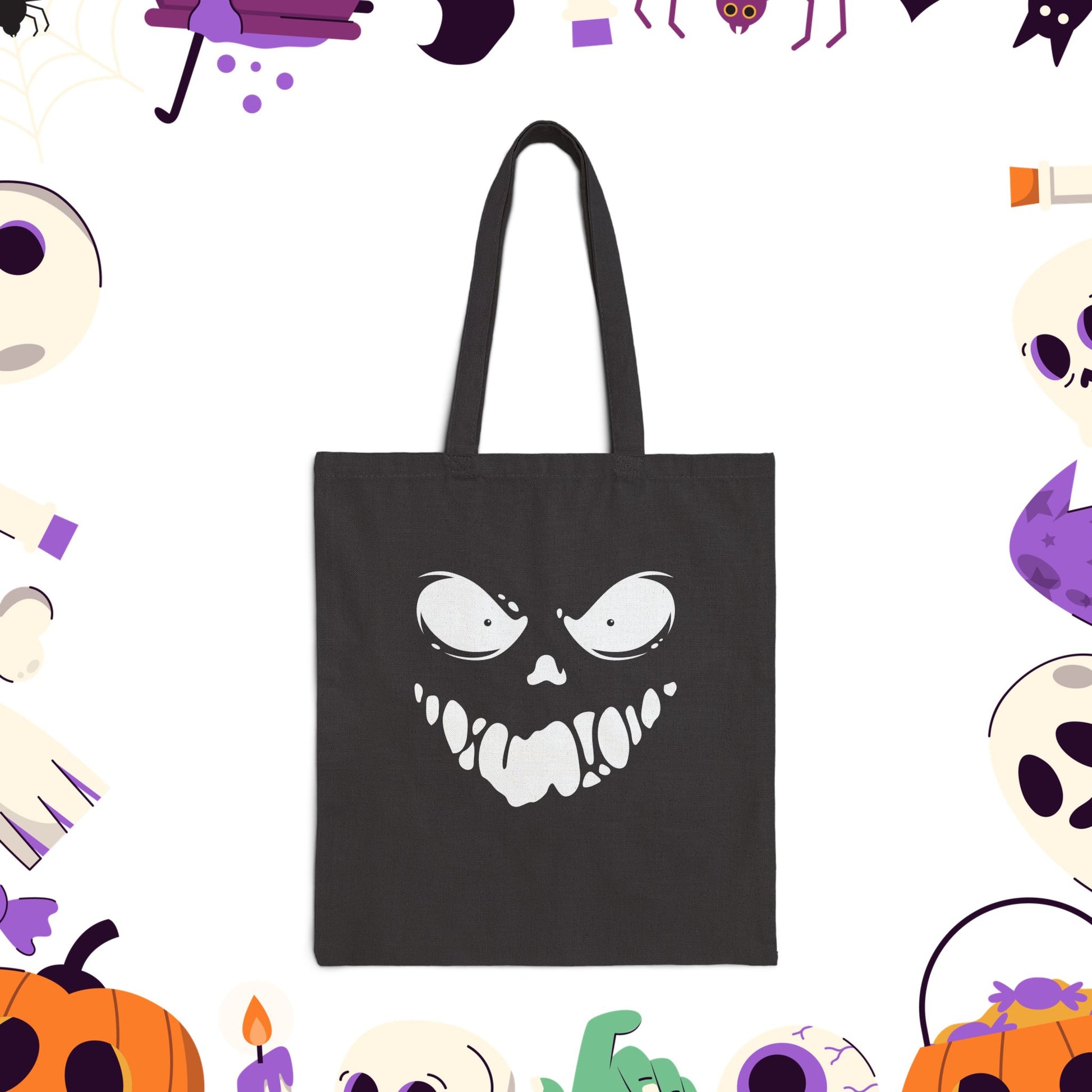 Sinister Grin at Midnight Canvas Tote Bag, Horror Tote, Trick or Treat Bag, Witchy Tote, Halloween Shopping Bag, Halloween Gift