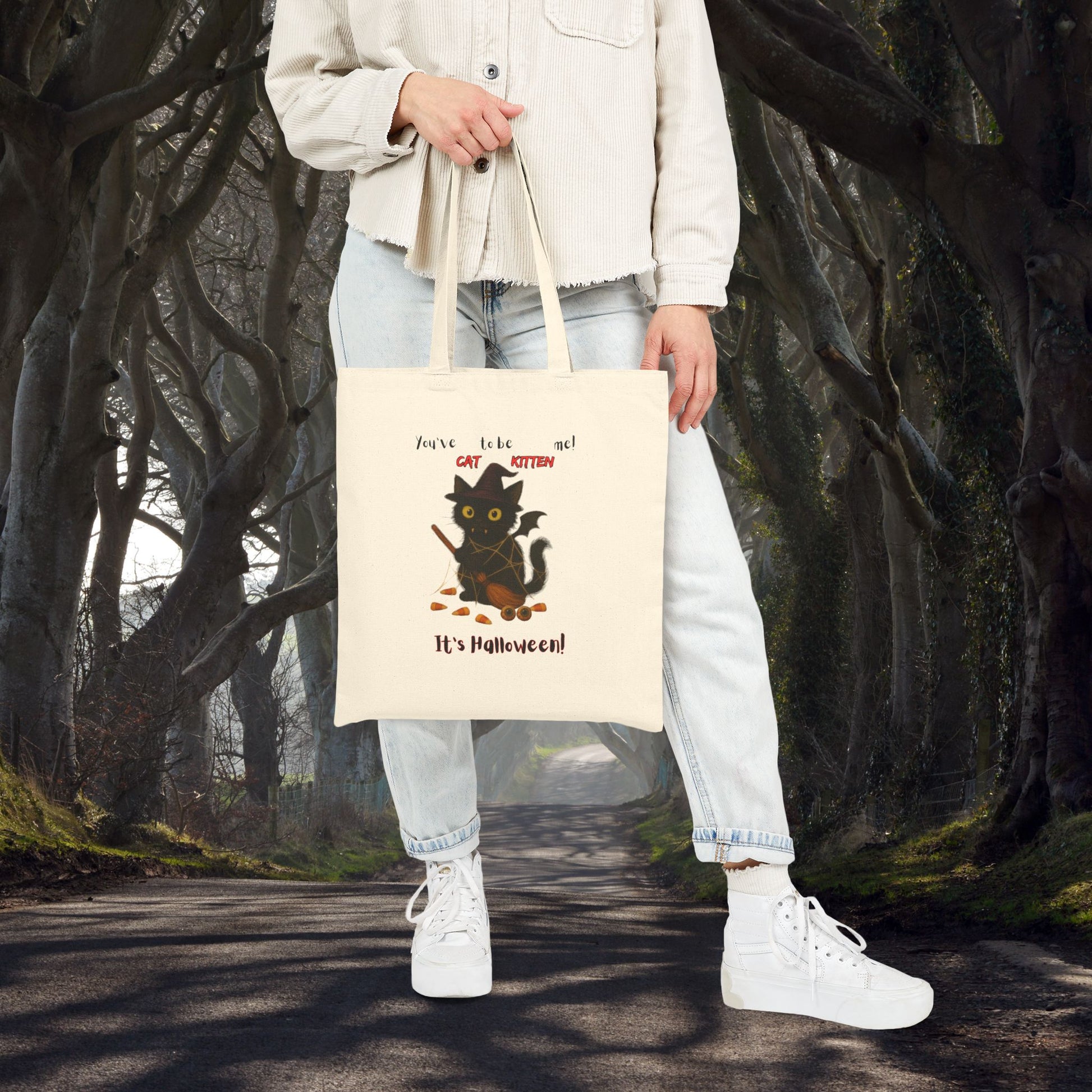 You've Cat to be Kitten me! Halloween Cat Tote Bag, Cute Trick or Treat Bag, Eco-Friendly Canvas Carrier, Fall Season Shopping Bag, Gift for Cat Lovers
